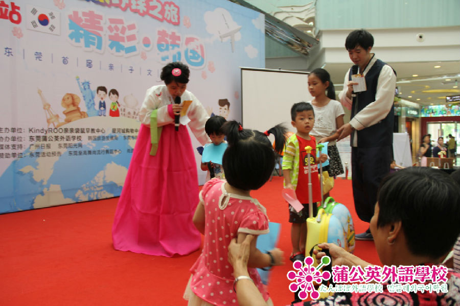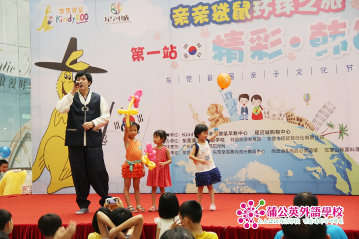 6月7日蒲公英外语学校环球之旅韩国站——精彩韩国暨东莞首届亲子文化节圆满结束!本次活动由东莞蒲公英外语学校主办和KindyROOG亲亲袋鼠早教中心主办,并再次感谢韩国旅游发展局,东莞市国际旅行社有限公司,汉拿山韩国料理,尚舞会&尚武心武道馆,东莞至高舞尚流行舞蹈中心,蚂蚁创业俱乐部以及东莞活动预告的大力支持。