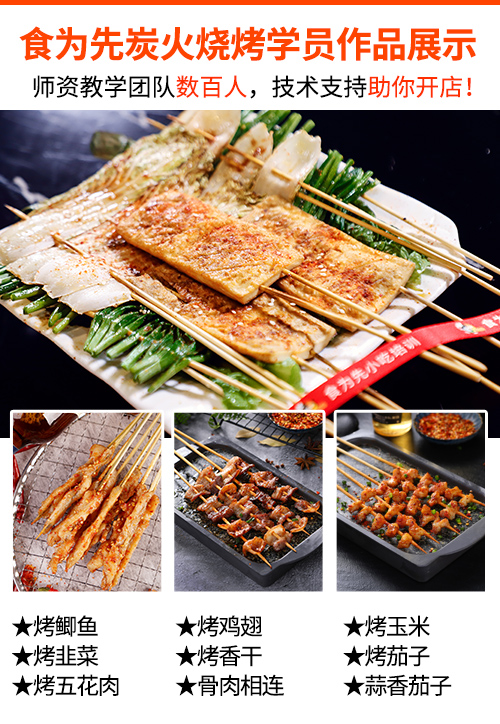 4.食为先专注小吃实训很多年,市场上大大小小的很多烧烤档的老板有可能在我们这里学过技术;